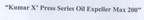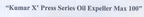 [Class : 7] Machines And Machine Tools, Mechanical Presses, Extrusion Machines, Oils And Fats Processing Machines, Plant And Machineries For Vegetable Oil Mills (Machines), Material Production And Processing Machines, Food And Beverage Processing And Preparation Machines And Apparatus, Extracting Machines For Chemical Processing, Presses [Machines] Being Goods Included In Cl...