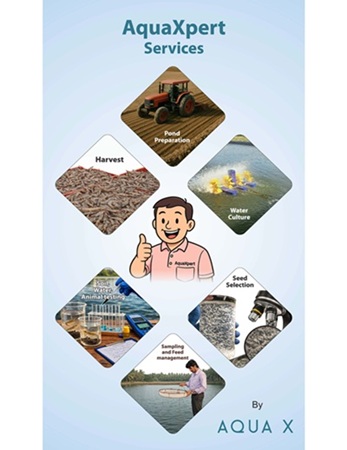 [Class : 44] Aquaculture Services; Fish Farming Services; Consultancy And Advisory Services Relating To Aquaculture; Pond Preparation Services; Water Quality Management; Seed Selection Services; Aquatic Feed Management; Soil And Water Testing Services For Aquaculture.