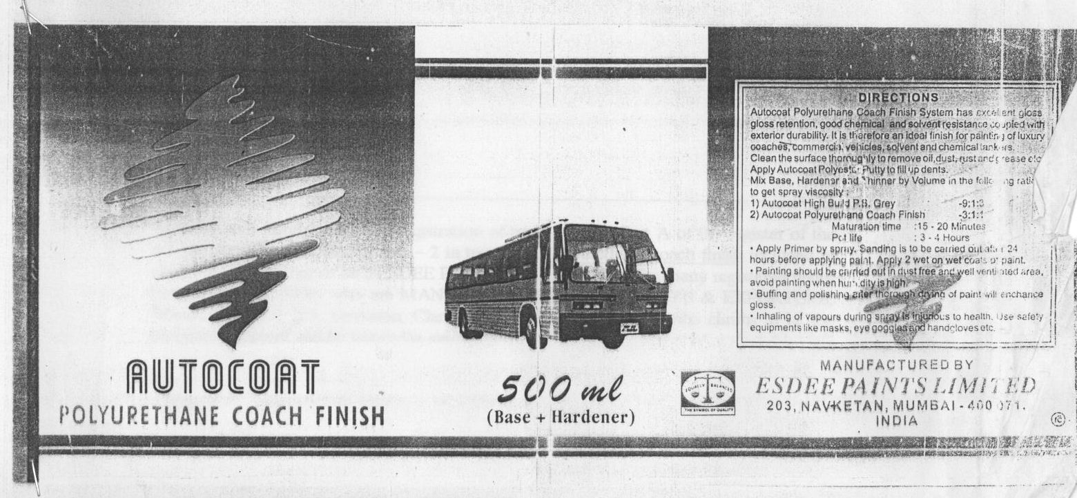 Esdee Paints Limited., 203, Navketan, Chembur, Mumbai 400 071,, (An Indian Company Registered Under Companies Act,1956,), Manufacturers, Merchants And Exporters,, (Body Incorporate)
