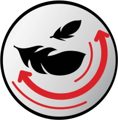 A Circular Device Comprising Of Two Feathers And A Bidirectional Arrow In The Form Of An Arc