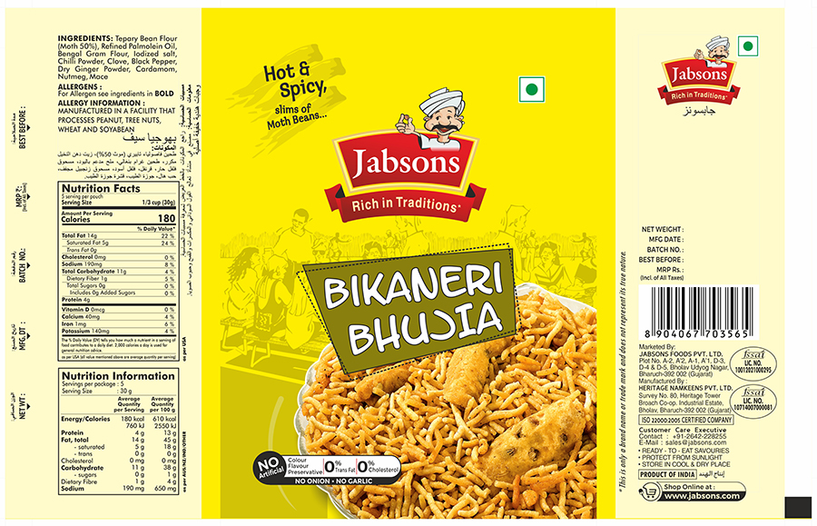 Jabsons Bikaneri Bhujia (label)