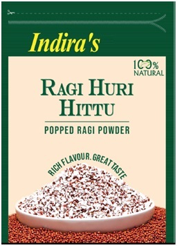 Indira's 100% Natural Ragi Huri Hittu Popped Ragi Powder Rich Flavour. Grate Taste Device mark 5102978 Trademark