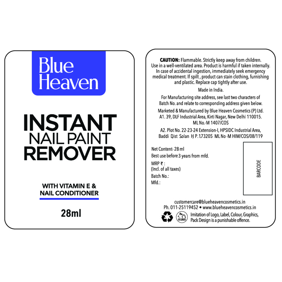 M/S. Blue Heaven Cosmetics Private Limited., B 104/5, Naraina Industrial Area, Phase 1, New Delhi 110 028 India, Company, (Body Incorporate)
