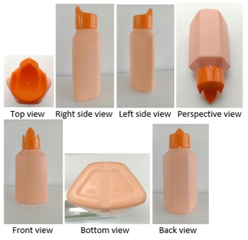 Adhesive Containing Bottle Having Unique Shape And Unique Trident Shaped Cap.