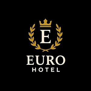 Trade Mark Consists Of Image Of E With Euro Hotel In Cream White Colour And Background In Black Colour And The Letter “E