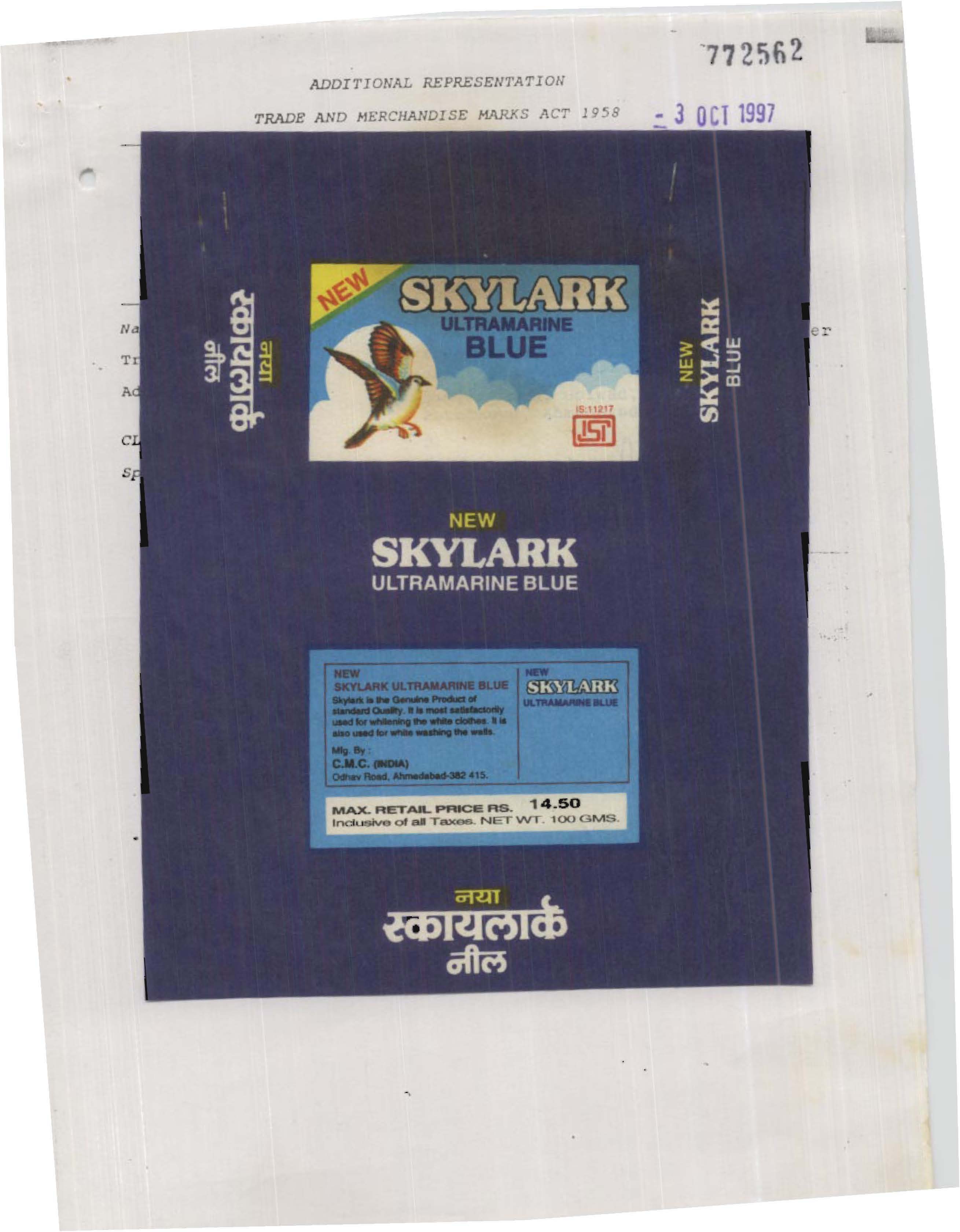 Trademark application was filed by SKYLARK C.M.C.